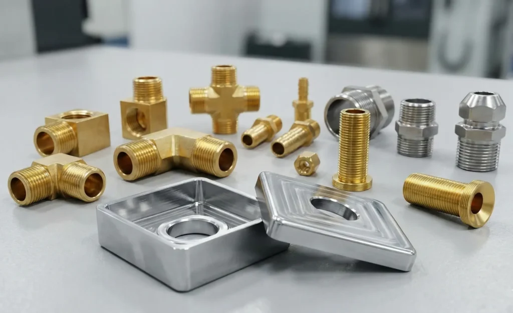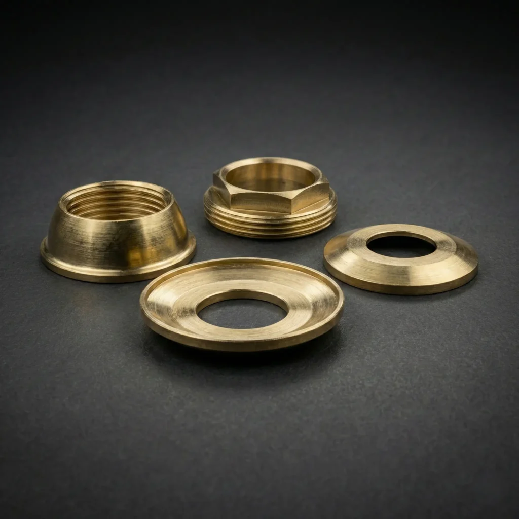 Precision components manufactured for sanitary and bath fitting applications, focusing on dimensional consistency, surface finish, and functional reliability.